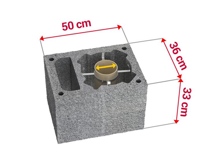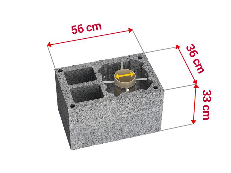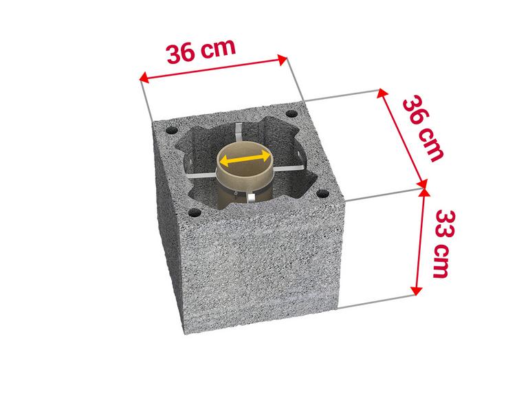 Die eingegebene Gesammthöhe, ist die Höhe der Leichtbeton Mantelsteine zuzüglich aller Aufbauteile wie Abdeckplatte und Abströmhaube.