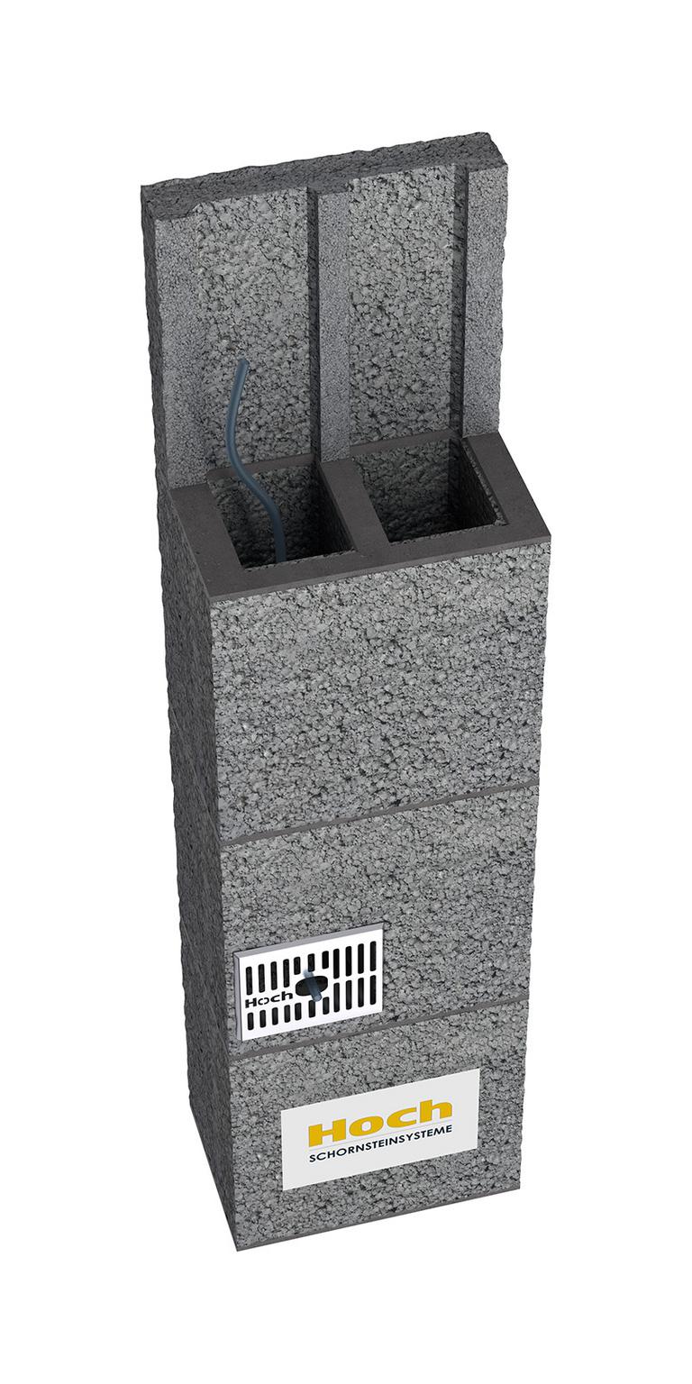 Die eingegebene Gesammthöhe, ist die Höhe der Leichtbeton Mantelsteine zuzüglich aller Aufbauteile wie Abdeckplatte und Abströmhaube.